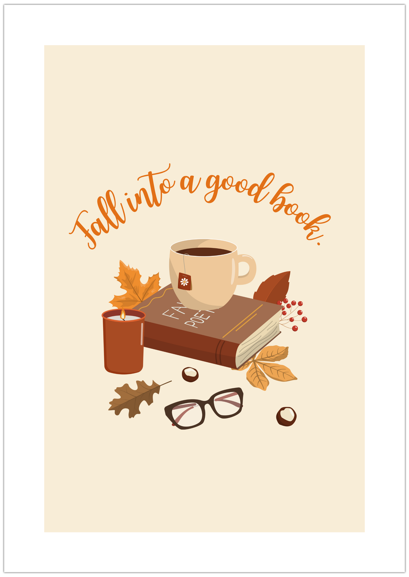 Hole dir gemütliche Herbststimmung nach Hause mit diesem liebevoll gestalteten Poster. Perfekt für alle Bücherliebhaber:innen verbindet dieses Kunstwerk die Magie des Herbstes mit der Freude am Lesen – und wird so zu einem stilvollen Blickfang in deinem Zuhause.